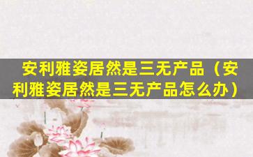 需要澄清的是,安利(Amway)是一家国际知名的直销公司,其产品雅姿(Artistry)是一个知名的美容护肤品牌。在中国,安利公司及其产品都是经过国家相关部门批准注册的,不属于“三无产品”(无生产日期、无质量合格证、无生产厂家)。