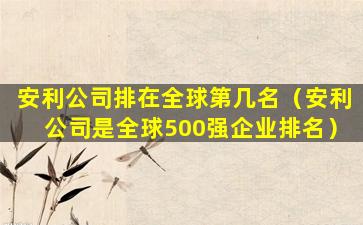 截至我所知的信息,安利(Amway)是一家总部位于美国的跨国直销公司,主要经营健康、美容和家居护理产品。安利并不是一家上市公司,因此它不会出现在《财富》或《福布斯》等杂志发布的全球500强企业排名中,这些排名通常是基于上市公司的财务数据。