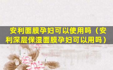 关于安利面膜是否适合孕妇使用,建议查看产品标签上的成分列表,并咨询医生或专业人士的意见。安利公司通常会提供详细的产品信息,包括成分和使用说明,你可以通过官方渠道获取这些信息。