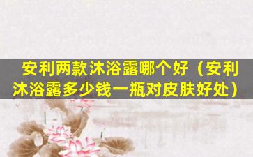 安利(Amway)是一个国际知名的直销公司,提供多种个人护理和家居产品。在沐浴露方面,安利通常会有几个不同的产品,每个产品都有其独特的特点和适用人群。以下是两款安利沐浴露的比较,但请注意,具体产品的名称和成分可能会随着时间和地区的不同而有所变化。