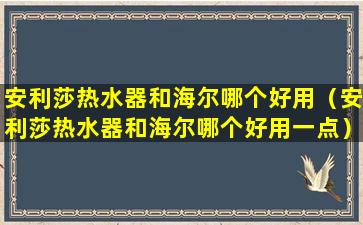 海尔作为一个老牌家电企业,在热水器领域有着较为成熟的技术和广泛的市场认可。而安利莎虽然可能在一些方面有自己的特色,但具体产品的好坏还需要根据实际的产品型号和用户评价来判断。建议在购买前,可以到实体店体验或者查看网上的用户评价,同时考虑自己的实际需求和预算,做出合理的选择。