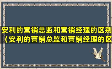安利(Amway)是一家全球性的直销公司,其营销结构中通常包括营销总监(Marketing Director)和营销经理(Marketing Manager)等职位。这两个职位在职责和级别上有所不同,以下是它们之间的一些区别: