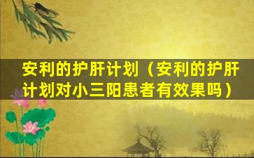 安利(Amway)是一家全球知名的直销公司,提供多种健康和营养补充产品。关于安利的护肝计划是否对小三阳患者有效,需要从几个方面来考虑: