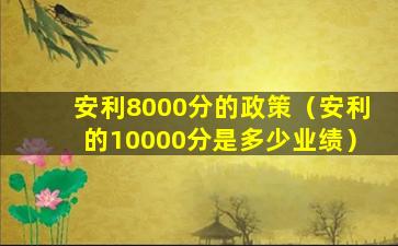 具体的“8000分政策”细节需要查阅安利公司的最新官方资料或直接咨询安利的官方渠道,因为这类政策可能会随着时间和地区的不同而有所变化。通常,这类政策会涉及达到一定积分后可以获得的奖励、优惠或其他激励措施。