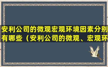 安利公司需要不断监测和分析这些微观和宏观环境因素的变化,以便及时调整其战略和运营,以保持竞争力和可持续发展。