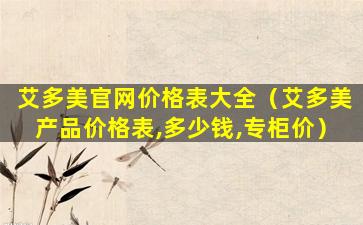 很抱歉,我无法提供“艾多美官网价格表大全”,因为这可能涉及到商业机密或版权问题。我的知识截止日期是2023年4月,我无法访问互联网以获取最新的信息。