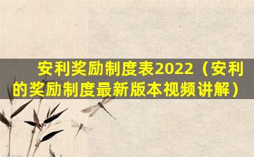 关于安利的奖励制度,我无法提供最新版本的视频讲解,因为我的知识库更新截止到2023年,且我无法访问实时的网络资源。不过,我可以提供一些关于安利奖励制度的基本信息。