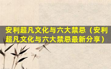 安利(Amway)是一家全球知名的直销公司,其文化强调个人成长、团队合作和积极的生活态度。关于“安利超凡文化与六大禁忌”的说法,并没有官方的明确解释,这可能是基于个人或团队对安利文化的理解和解读。