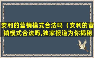 在中国,安利的营销模式是合法的,但必须遵守中国的法律法规。中国政府对直销行业有严格的监管,包括但不限于《直销管理条例》和《禁止传销条例》等。这些法规旨在规范直销行为,防止传销活动,保护消费者权益。