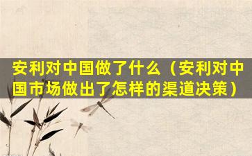安利对中国做了什么(安利对中国市场做出了怎样的渠道决策)