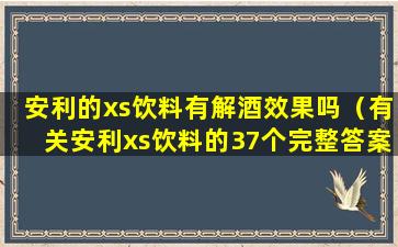 安利的XS饮料是一种能量饮料,它含有咖啡因、维生素B群和其他成分,旨在提供能量和提神效果。关于XS饮料是否具有解酒效果,目前没有科学证据表明它能够有效地帮助解酒。