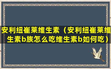 安利纽崔莱(Amway Nutrilite)是一家知名的营养补充品品牌,其维生素B族产品通常是作为膳食补充剂来帮助补充日常饮食中可能缺乏的维生素B。关于如何服用安利纽崔莱的维生素B族产品,以下是一些一般性的建议: