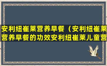 "安利纽崔莱营养早餐"是指由安利公司(Amway)旗下的纽崔莱(Nutrilite)品牌推出的一系列营养早餐产品。纽崔莱是一个知名的营养补充品品牌,专注于提供基于植物的营养补充解决方案。