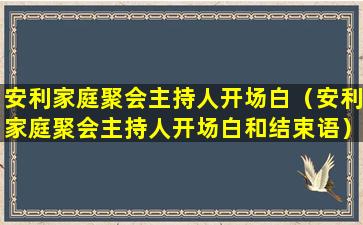 安利家庭聚会通常是指安利公司(Amway)的直销商在家中举办的产品介绍或销售活动。作为主持人,你的开场白应该热情、友好,并且能够吸引参与者的注意力。以下是一个可能的开场白示例: