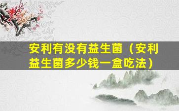 安利(Amway)是一家国际性的直销公司,其产品线涵盖了营养补充品、个人护理品、家居清洁用品等多个领域。在营养补充品中,安利确实有提供含有益生菌的产品。