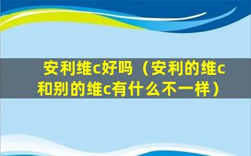 关于“安利维c好吗”的问题,这里有一些考虑因素: