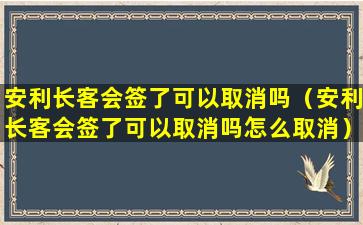 关于您提到的“安利长客会”签约后是否可以取消以及如何取消的问题,由于“安利长客会”并不是一个广为人知的标准化服务或产品,我无法提供具体的取消流程。通常情况下,如果您指的是安利公司的某个会员计划或服务,取消流程可能会遵循以下一般性步骤: