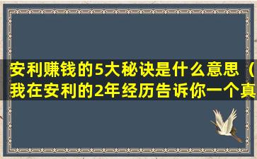 “安利赚钱的5大秘诀”通常是指安利公司(Amway)推广其产品和业务机会时所强调的一些成功策略或方法。安利是一家全球性的直销公司,主要通过个人销售和网络营销来推广其产品。以下是一些可能被提及的“秘诀”:
