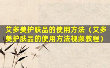 如果你需要关于艾多美护肤品的特定信息,建议访问艾多美官方网站或联系他们的客服获取详细的产品使用说明。你也可以在视频分享平台如YouTube上搜索“艾多美护肤品使用方法”来找到相关的视频教程。