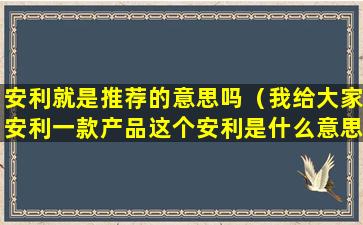 "安利"这个词在网络用语中确实有推荐的意思。它源自日语中的“アドバイス”(advice),在网络语境中,通常用来表示推荐某样东西,比如一部电影、一本书、一款游戏或者一种生活方式等。当有人说“我来安利一下”时,他们通常是想分享并推荐他们认为好的东西给其他人。
