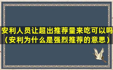 如果安利人员建议您超出产品推荐量来使用产品,这可能不是一个好的建议。超出推荐量使用产品可能会导致不必要的浪费。某些产品如果使用过量,可能会对健康产生不利影响。例如,营养补充品如果摄入过量,可能会导致营养过剩或与其他药物产生不良反应。