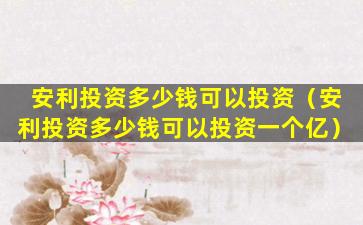关于“安利投资多少钱可以投资一个亿”的问题,首先需要澄清的是,安利(Amway)是一家全球知名的直销公司,主要通过直销模式销售健康、美容和个人护理产品。安利本身并不是一个投资平台,而是一个商业机会,人们可以通过成为安利的独立业务代表来销售产品并建立自己的业务。