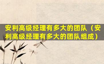 安利(Amway)是一家全球性的直销公司,其组织结构和团队规模可能会因地区、市场和个人业绩而有所不同。在安利,高级经理通常是指那些在公司内部达到一定业绩水平并负责管理一个较大团队的销售人员。