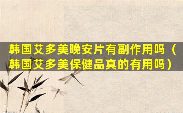 关于“韩国艾多美晚安片”是否有副作用,我无法提供具体的信息,因为这可能是一个特定品牌或产品的名称,而且药品的副作用通常需要根据其成分、使用说明以及用户的具体健康状况来评估。