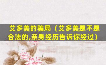 关于“艾多美的骗局”,目前没有确切的信息表明这是一个普遍认可的骗局。网络上的确存在许多诈骗行为,它们可能以各种形式出现,包括虚假的投资机会、假冒的商品销售、网络钓鱼等。