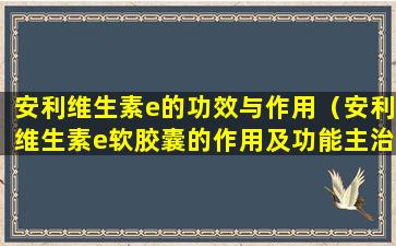 安利(Amway)是一家全球知名的直销公司,其产品线包括营养补充品,如维生素E。维生素E是一种脂溶性维生素,对人体健康有多种益处。以下是维生素E的一些主要功效与作用:
