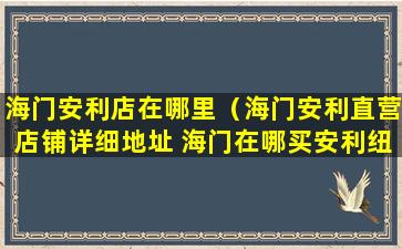 截至我所知的信息更新日期(2023年),安利(Amway)是一家全球知名的直销公司,其产品包括营养补充品、个人护理品、家居清洁用品等。在中国,安利有多个销售点和服务中心,但具体到海门市的安利店铺位置,我无法提供实时信息。
