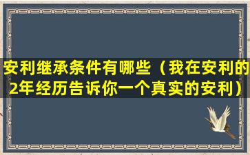 请注意,以上信息仅供参考,具体的继承条件和要求可能会有所不同。如果您是安利的分销商或有意加入安利,建议直接联系安利公司或访问其官方网站获取最准确和最新的信息。