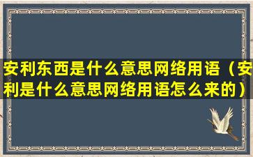 "安利"是一个源自日语的网络用语,原词为“アドバイス”(advice),在网络用语中被音译为“安利”。在中文网络语境中,“安利”通常指的是推荐或介绍某样东西给他人,尤其是指推荐一些好物、好书、好电影、好剧集、好音乐、好软件等给朋友或网友。