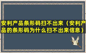 安利(Amway)是一家全球知名的直销公司,其产品通常都有条形码,用于产品识别和追踪。如果你扫描安利产品的条形码时发现无法识别,可能有以下几种情况: