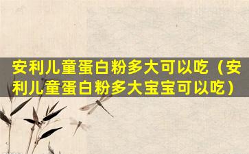 安利(Amway)是一家国际知名的直销公司,其产品线包括营养补充品,如蛋白粉。关于儿童是否可以食用安利蛋白粉,以及适合的年龄,需要根据产品的具体说明和建议来确定。