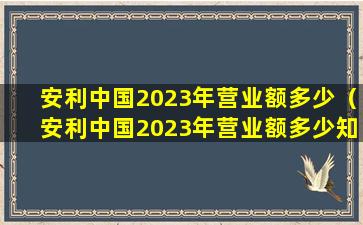 截至我的知识更新日期(2023年初),我无法提供安利中国2023年的具体营业额数据,因为这些信息通常需要等到公司发布年度财务报告后才能得知。安利(Amway)是一家全球性的直销公司,其财务状况和营业额数据通常会在公司的年度报告中公布。