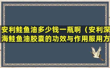 请注意,以上信息仅供参考,具体产品的服用方法和剂量应参照产品说明书或医生的建议。如果你对安利深海鲑鱼油胶囊有兴趣,建议直接咨询安利公司的官方渠道或授权经销商获取最准确的产品信息。