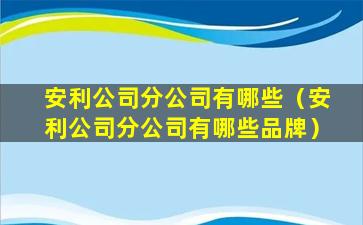 安利(Amway)是一家全球知名的直销公司,总部位于美国密歇根州的艾达(Ada)。安利在全球多个国家和地区设有分公司,以下是一些主要的安利分公司及其所在国家或地区: