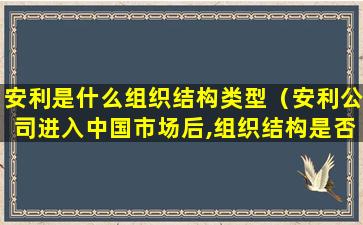 安利公司(Amway)是一家全球性的直销公司,成立于1959年,总部位于美国密歇根州。安利在1995年进入中国市场,并在中国设立了安利(中国)日用品有限公司。随着时间的推移,安利在中国的组织结构确实发生了一些变化,以适应中国市场的特点和法律法规的要求。