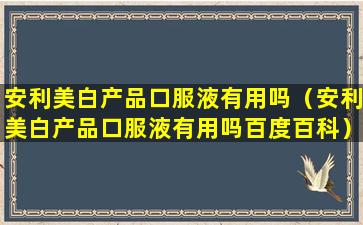 关于安利(Amway)的美白产品,包括口服液,其效果因人而异。安利是一家国际知名的直销公司,提供多种健康、美容和个人护理产品。在考虑使用任何美白产品之前,建议您仔细阅读产品说明,了解其成分、使用方法以及可能的副作用。