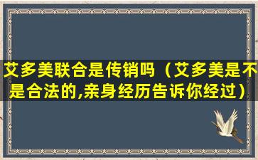 截至我的知识更新日期(2023年),艾多美联合(AIM Global)是一个国际性的多层次营销(MLM)公司,总部位于菲律宾。多层次营销是一种合法的商业模式,它允许个人通过销售产品和招募其他销售人员来赚取收入。多层次营销公司有时会被误认为是传销,尤其是在它们的商业模式中如果过分强调招募而非产品销售时。