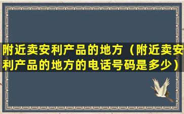 在中国,安利(Amway)是一家知名的直销公司,销售各种健康、美容和个人护理产品。如果您想找到附近的安利产品销售点,可以尝试以下几种方法: