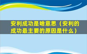 "安利成功"这个表达源自网络用语,"安利"一词是英文"Amway"(安利公司,一家美国的直销公司)的音译,后来在中国网络语境中被广泛用来指代推荐或推销某种产品、服务、信息等。"安利成功"则意味着推荐或推销的行为取得了预期的效果,即被推荐的对象接受了推荐,并可能采取了相应的行动,比如购买了产品、使用了服务、关注了信息等。