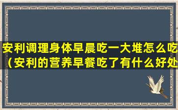 安利(Amway)是一家全球性的直销公司,提供多种健康和营养产品。如果您在早晨使用安利产品来调理身体,并且需要吃很多产品,以下是一些建议来帮助您更好地安排和消化这些产品:
