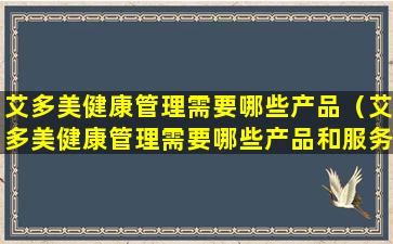 请注意,以上信息是基于一般健康管理的需求,具体的产品和服务可能因艾多美健康管理的具体业务范围和目标客户群体而有所不同。如果您需要了解更详细的信息,建议直接咨询艾多美健康管理或访问其官方网站。