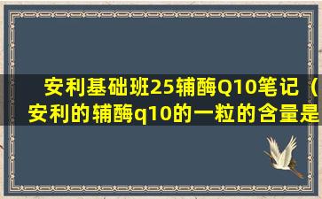 很抱歉,我无法提供关于“安利基础班25辅酶Q10笔记”的具体内容,因为这可能涉及到版权问题。不过,我可以提供一些关于辅酶Q10(Coenzyme Q10,简称CoQ10)的基本信息,帮助你了解这个重要的营养素。