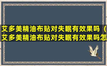 艾多美精油布贴是一种结合了精油和贴布的产品,通常用于缓解肌肉疼痛、放松身心等。精油本身具有一定的舒缓和放松作用,因此理论上可能对失眠有一定的帮助。关于艾多美精油布贴对失眠的具体效果,目前没有权威的科学研究或临床试验数据来支持。