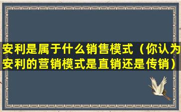 安利(Amway)是一家全球知名的直销公司,其营销模式是直销。直销是一种销售模式,生产商直接向消费者销售产品,通常通过个人销售代表进行。这种模式允许消费者直接从生产商或其代表那里购买产品,而不通过传统的零售渠道。