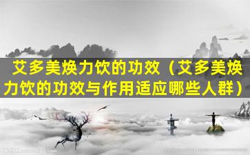 关于“艾多美焕力饮”的功效与作用以及适应人群,我无法提供具体的信息,因为这可能是一个特定品牌或产品的名称,而我没有足够的信息来验证其成分、功效或安全性。在中国,所有健康食品和药品都必须经过国家药品监督管理局(NMPA)的批准,并且其功效和安全性都有严格的监管。
