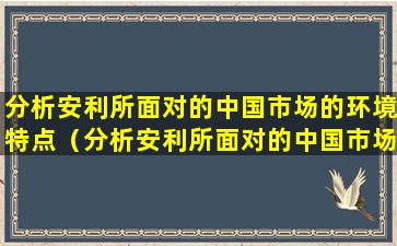 安利在中国市场面临着多方面的挑战和机遇。为了成功,安利需要不断适应市场变化,深入了解消费者需求,遵守当地法律法规,并利用有效的营销策略来提升品牌影响力和市场份额。